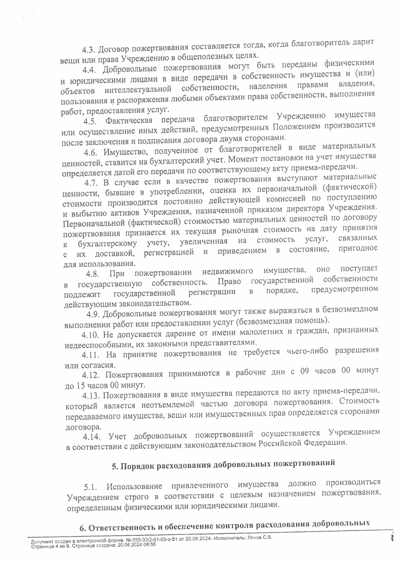 Положение о добровольныхпожертвованиях физических и юридических лиц в МКУ СОЖВ