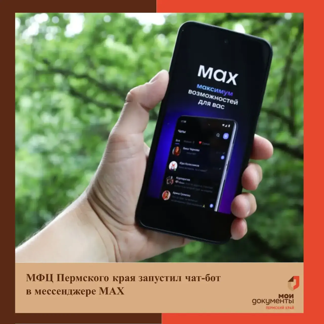 📲Для начала работы с чат-ботом необходимо установить приложение MAX на смартфон, после чего найти бота «МФЦ Пермского края» через поиск в мессенджере или перейдя по прямой ссылке https://max.ru/mfc_permkrai_max_bot